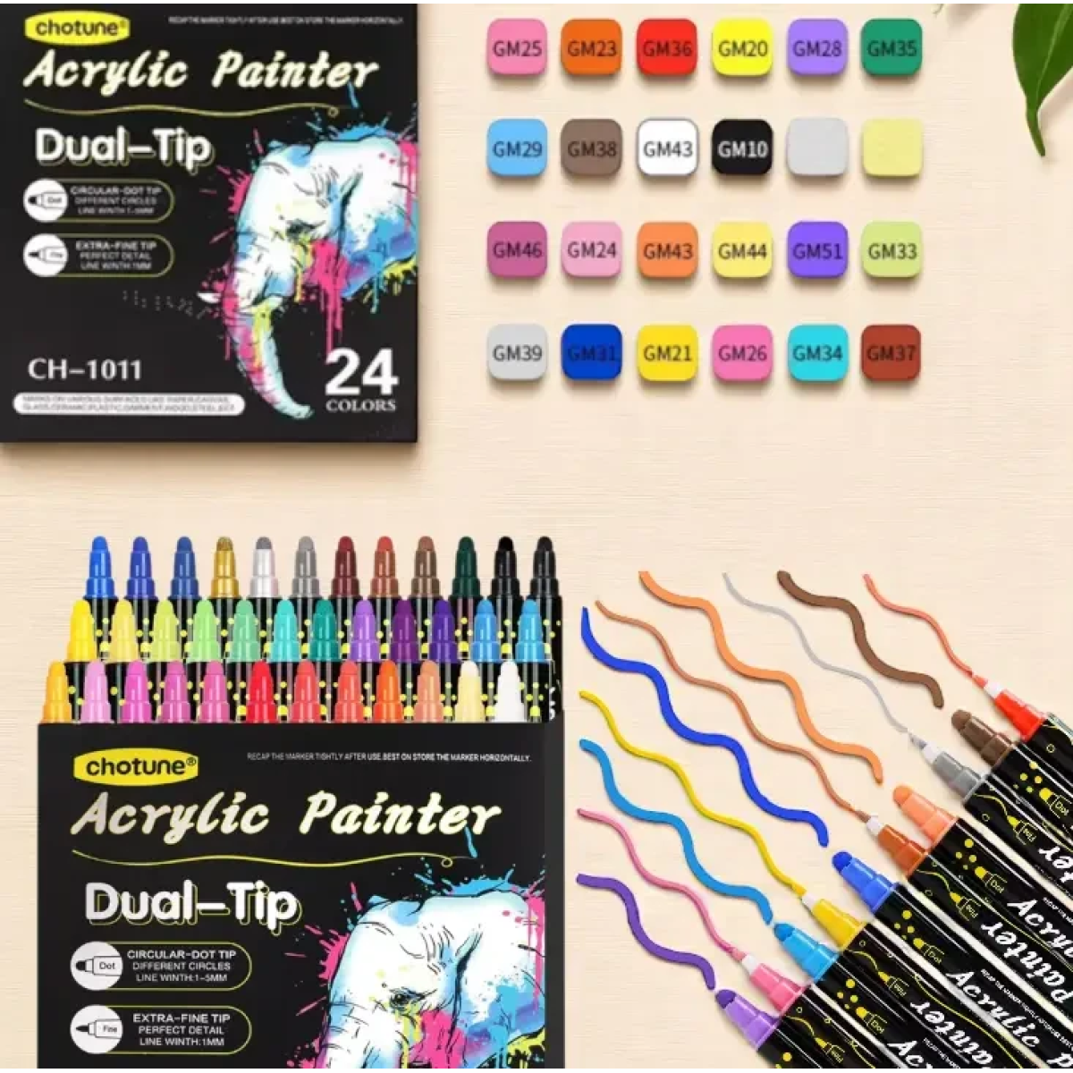 Подарунковий набір акрилових маркерів 24 кольори — для розпису скла, каменю, дерева, тканини, ідеально для творчості