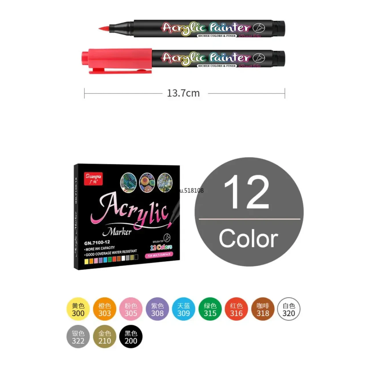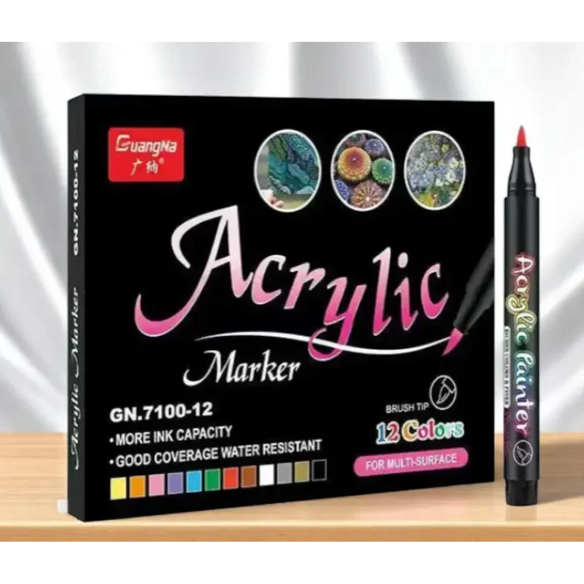 Набір акрилових маркерів GuangNa GN.7100 — 12 кольорів, для малювання, розпису, творчості