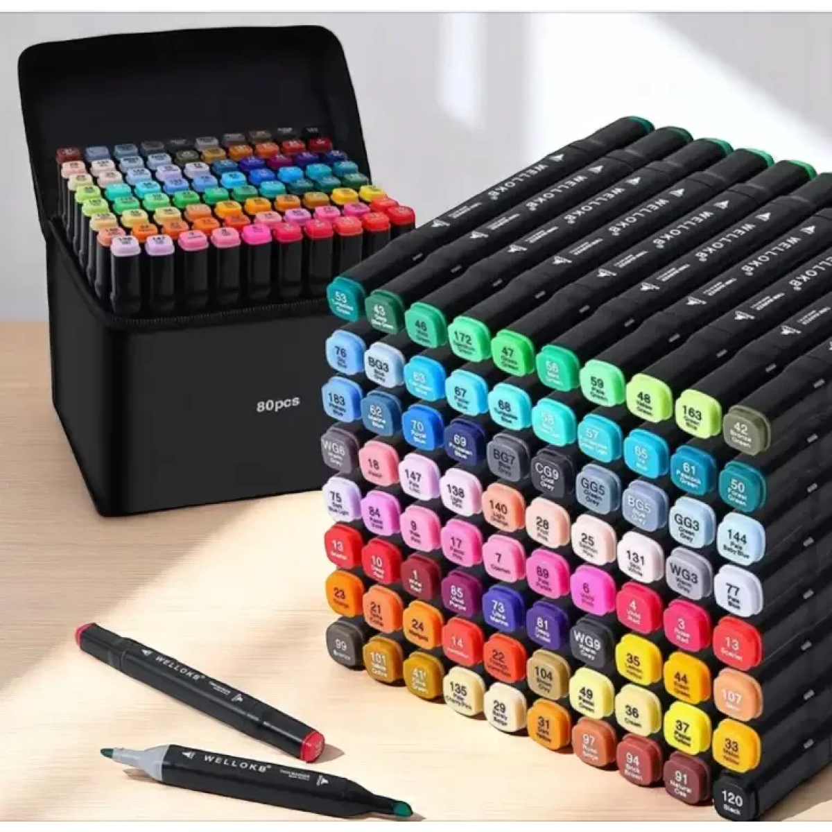 Маркер Скетч 80 шт, набір кольорових маркерів для малювання, художні маркери для скетчингу, маркери для творчості та дизайну