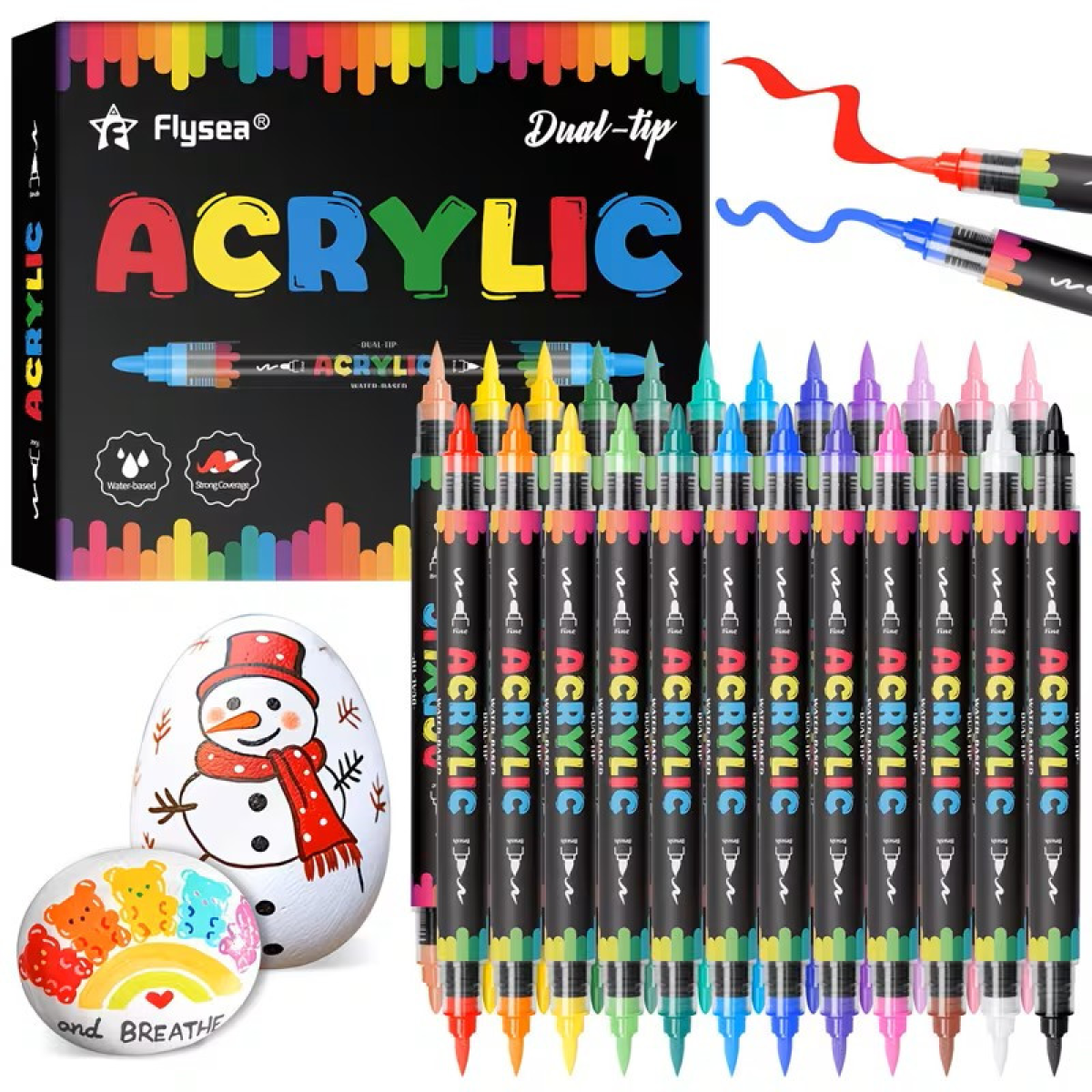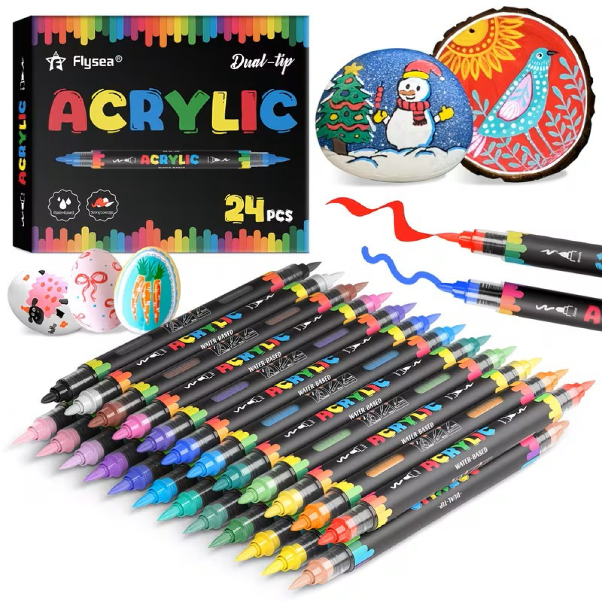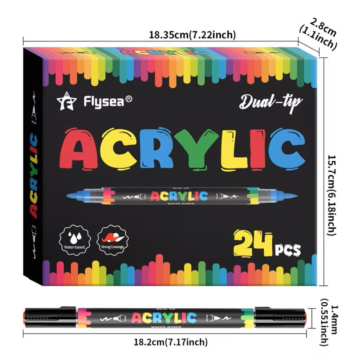 Акрилові маркери Flysea Dual Tip 24 кольори, м“який пензлик + жорсткий наконечник