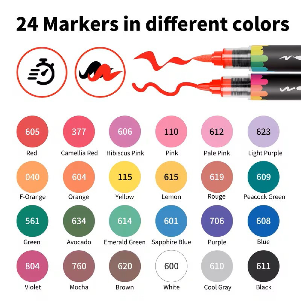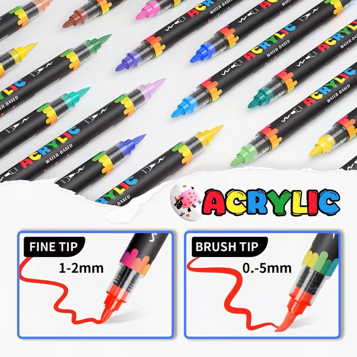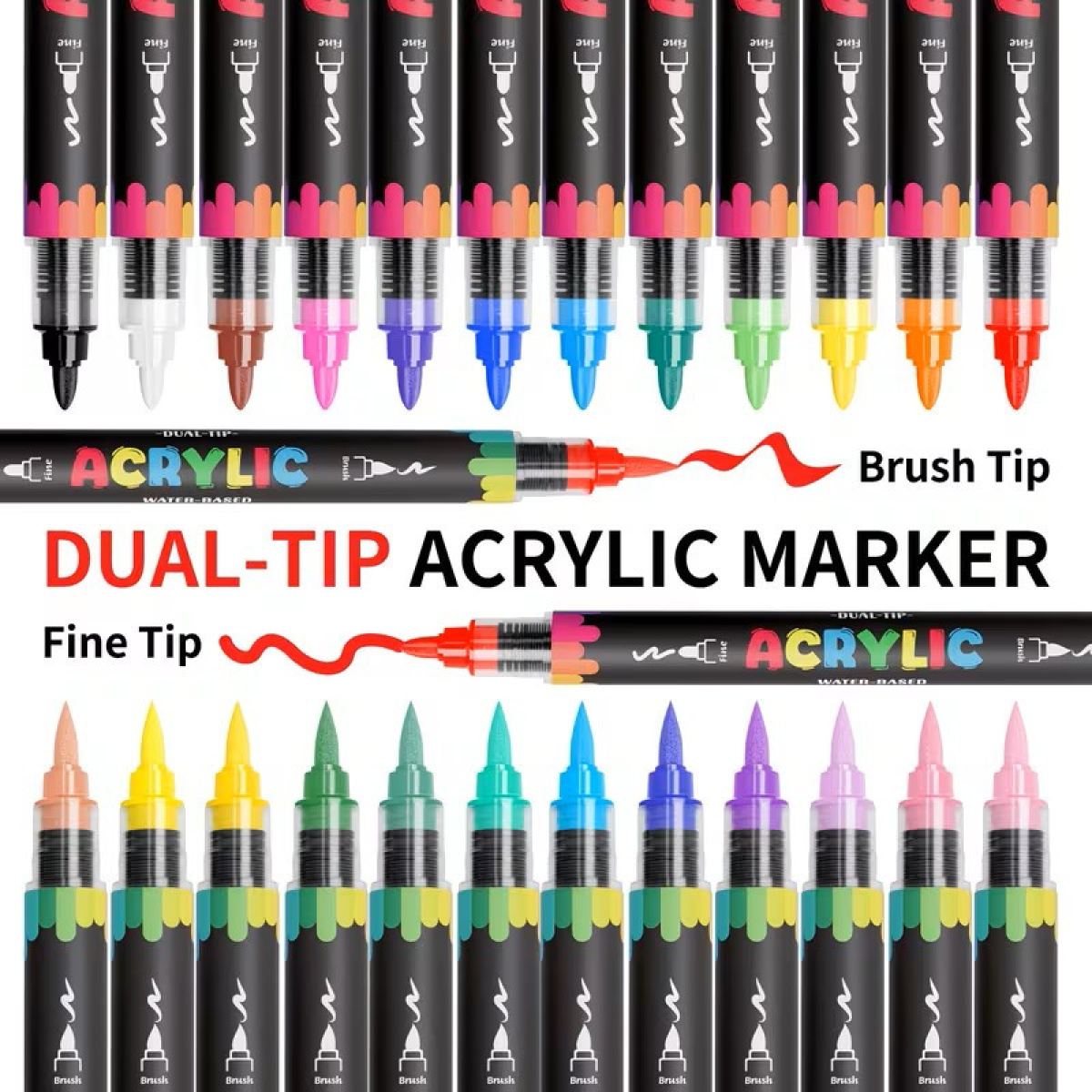 Акрилові маркери Flysea Dual Tip 24 кольори, м“який пензлик + жорсткий наконечник